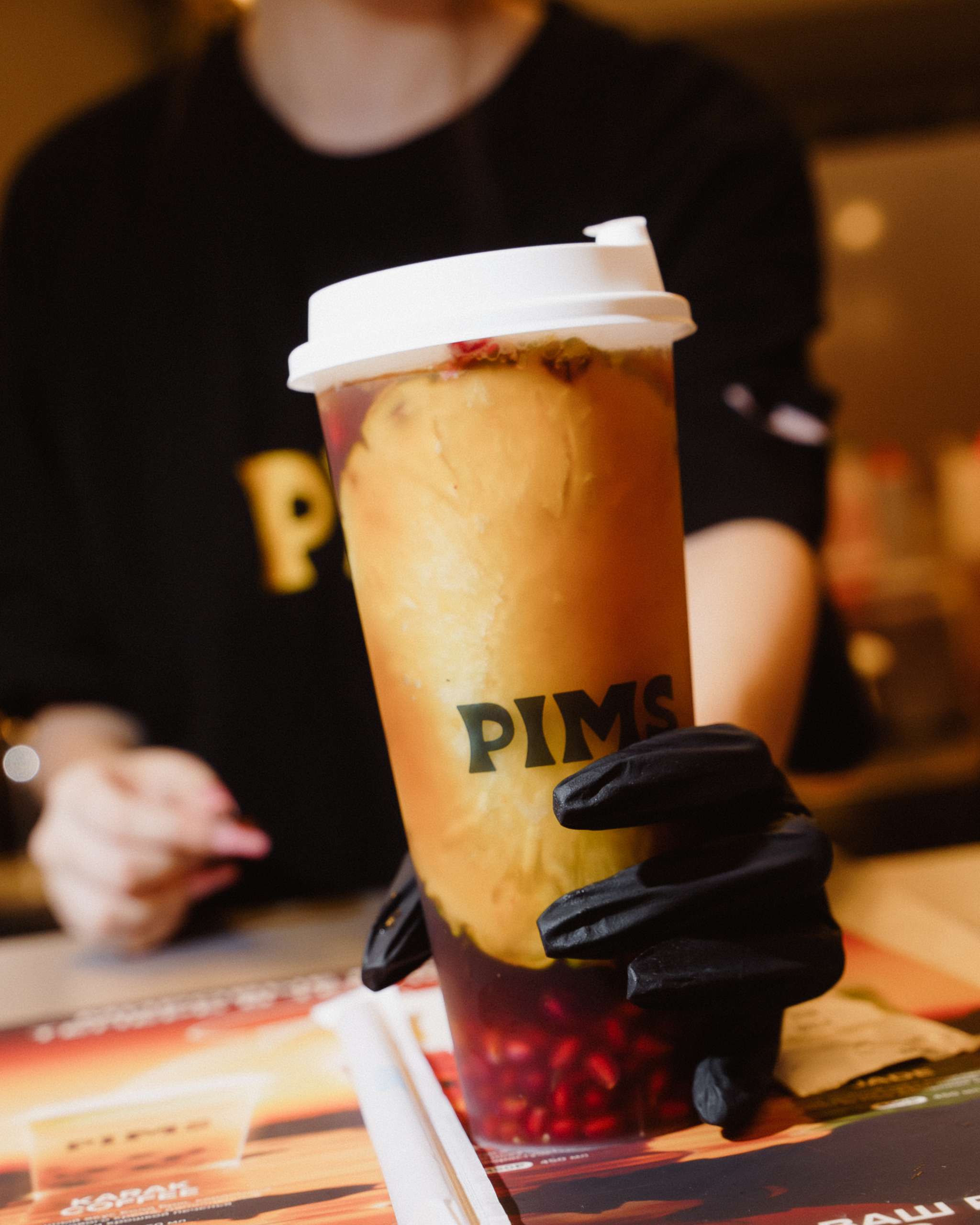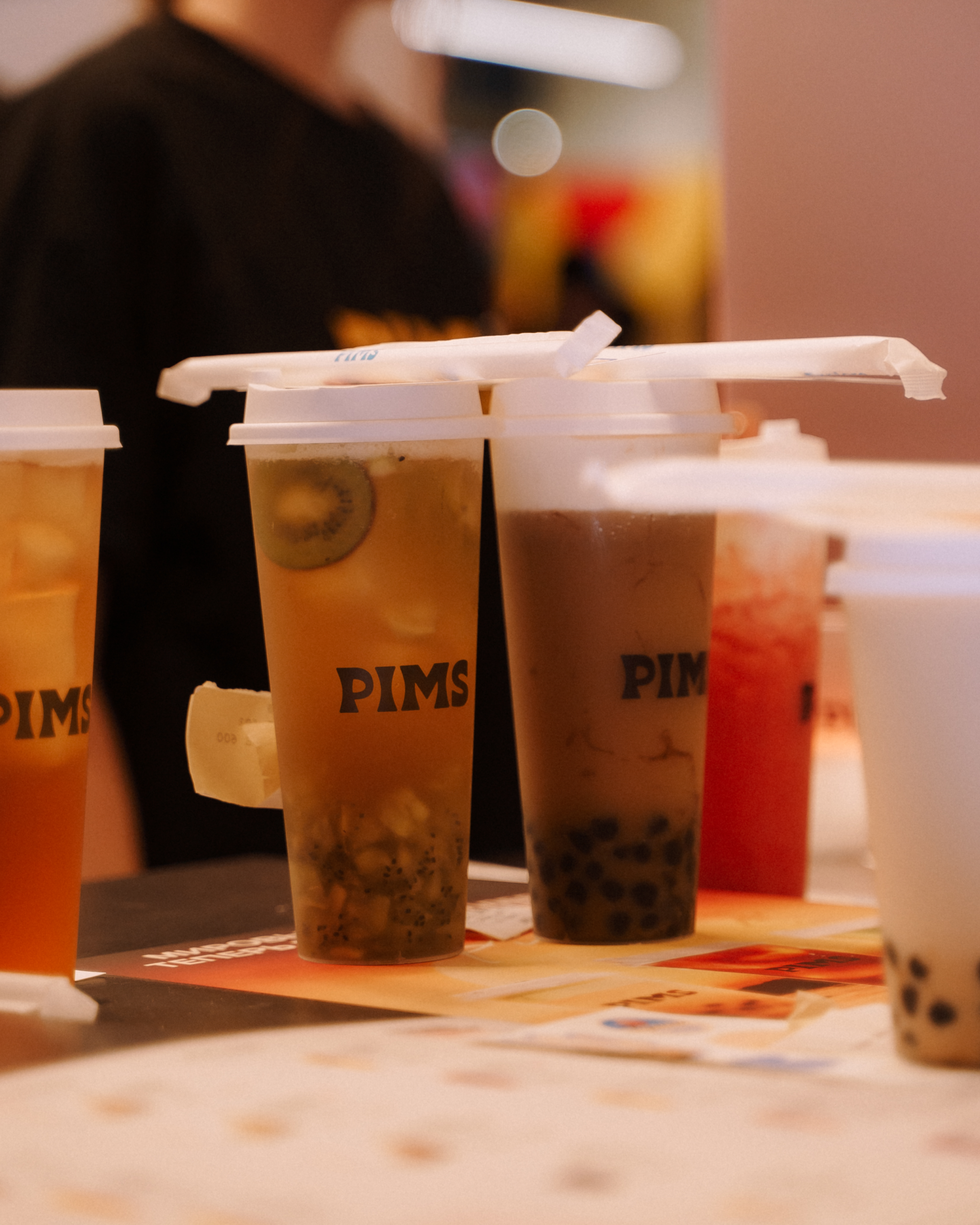PIMS — это напитки на основе ферментированного чая с фруктами, ягодами, тапиокой и фирменным кремом сверху.